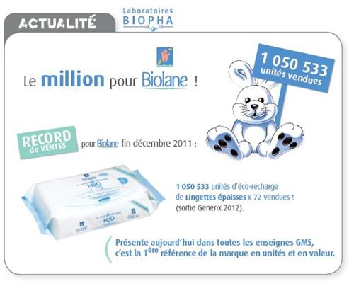 法贝儿婴儿清洁护肤纯净湿巾(72抽补充装)2011年度在法国本土销售超过一百万包,创下了单品销售纪录1,050,533包!